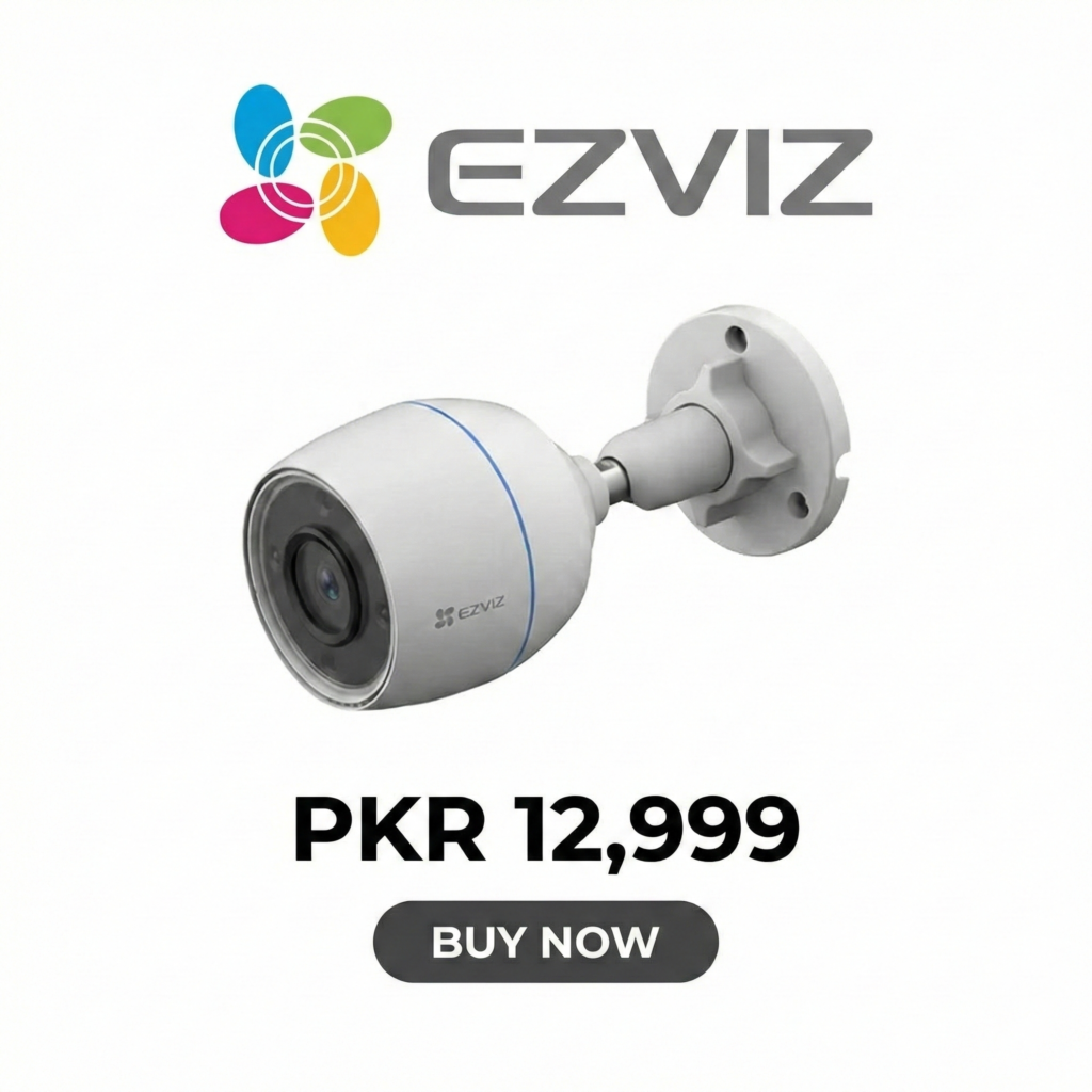 For the Entrance/Outside: Use Ezviz H3c Color (PKR 12,999) or Ezviz H8c (PKR 15,499) for Wi-Fi. Use Dahua Cooper (PKR 3,200) if you want wired and cheap.